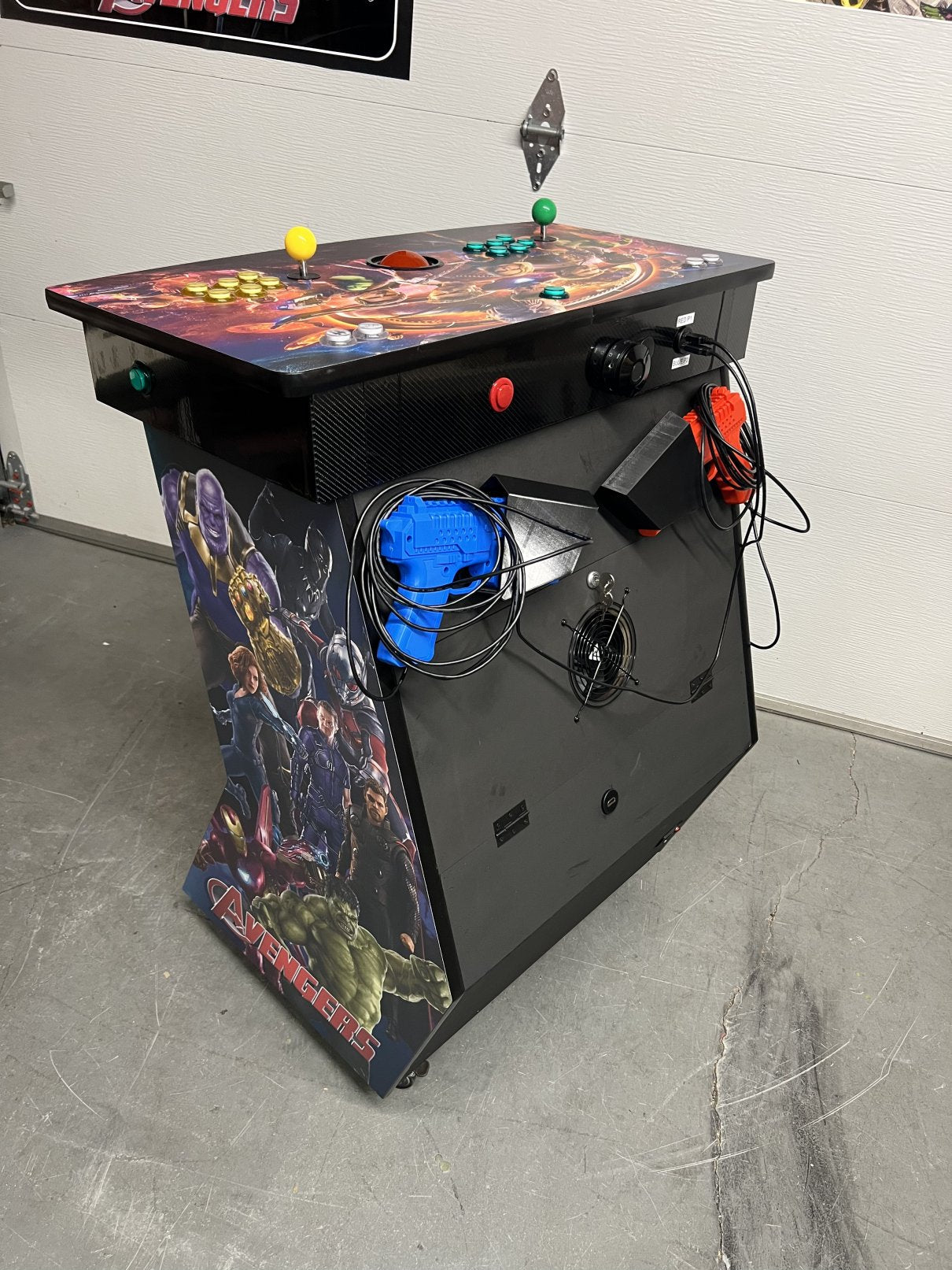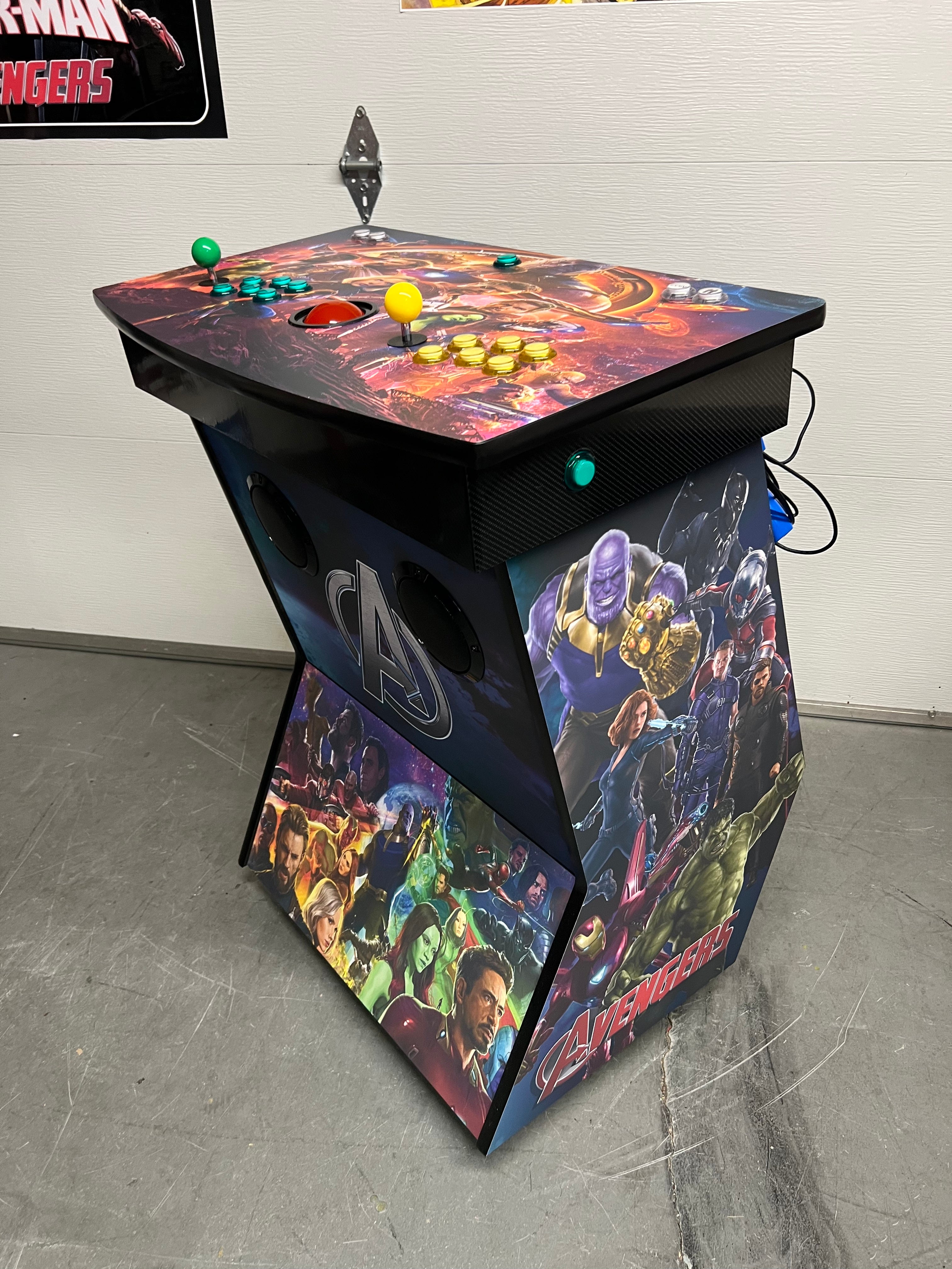 This 2 player pedestal cabinet is perfect to turn any area into an instant arcade. Slight smaller than the 4 player... it is equipped with lockable casters to easily move around. Just plug an hdmi cable to your display and play!