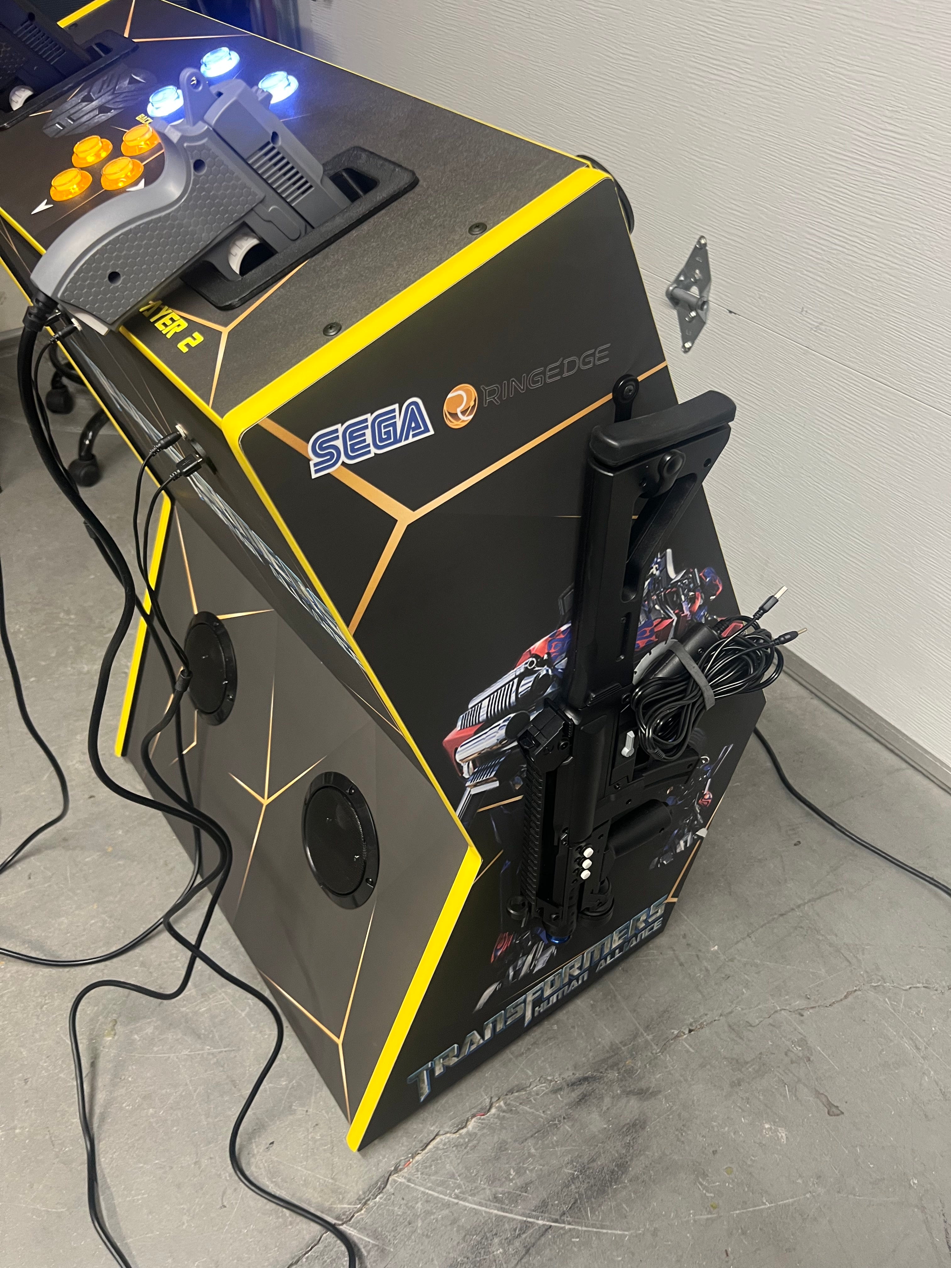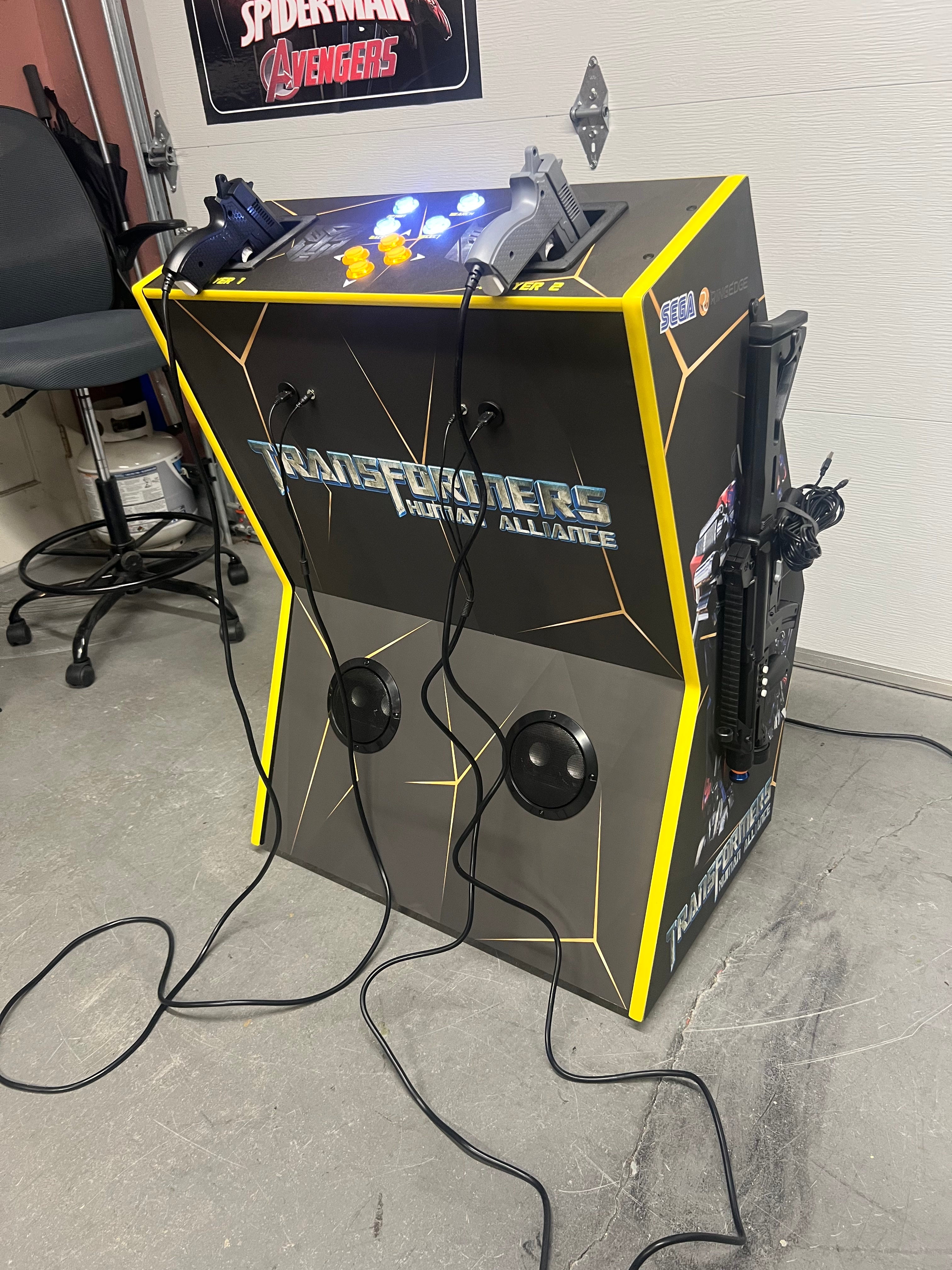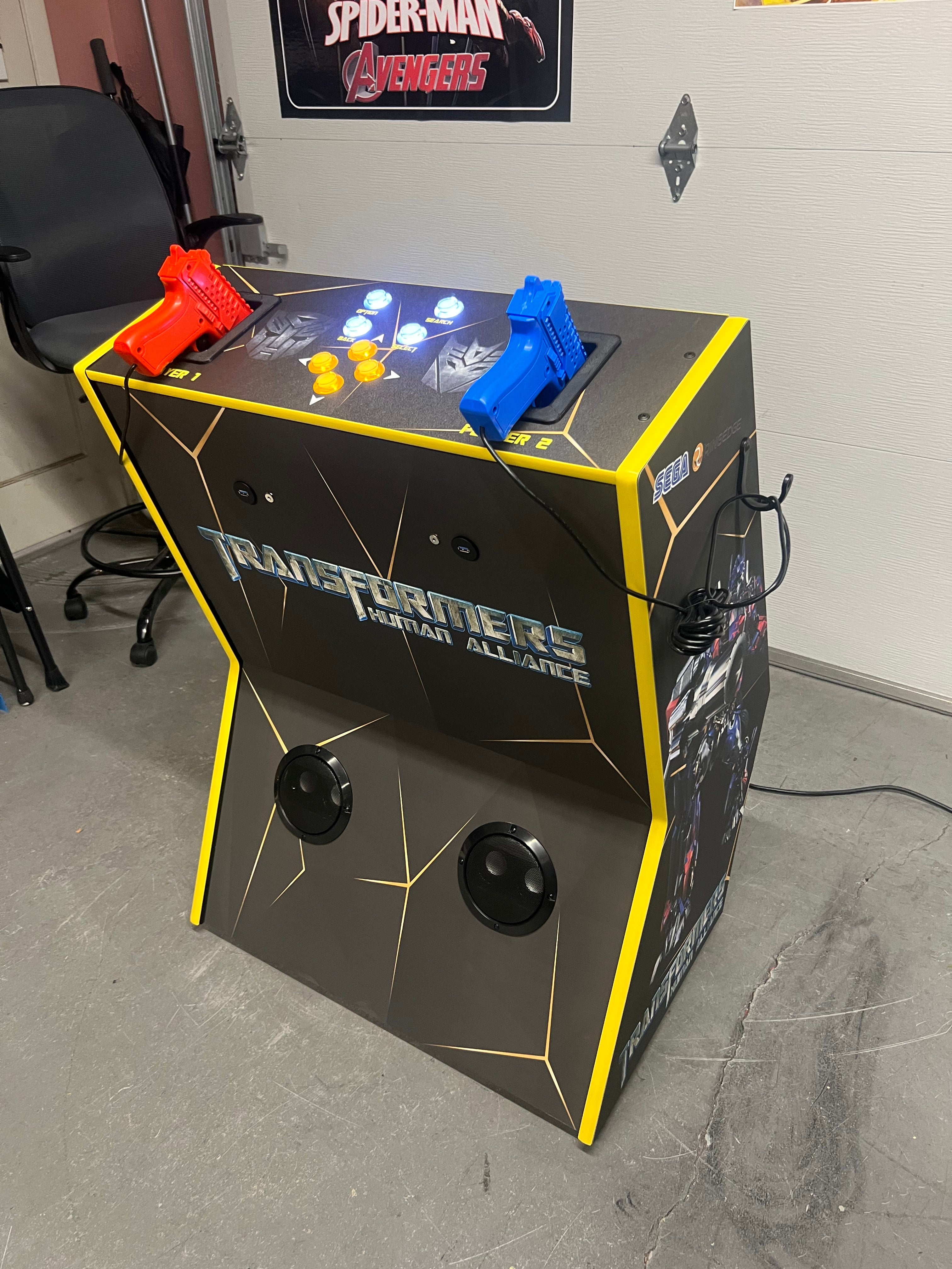 This 2 player pedestal shooter is a perfect for solution if you don't have space for a full size cabinet. This cabinet is on casters and can hookup to any wall mounted TV/display. Just hookup your HDMI and power cables and you are ready to go! Sound is routed thru your TV or home audio system or you can upgrade to a built in speaker system with subwoofer.