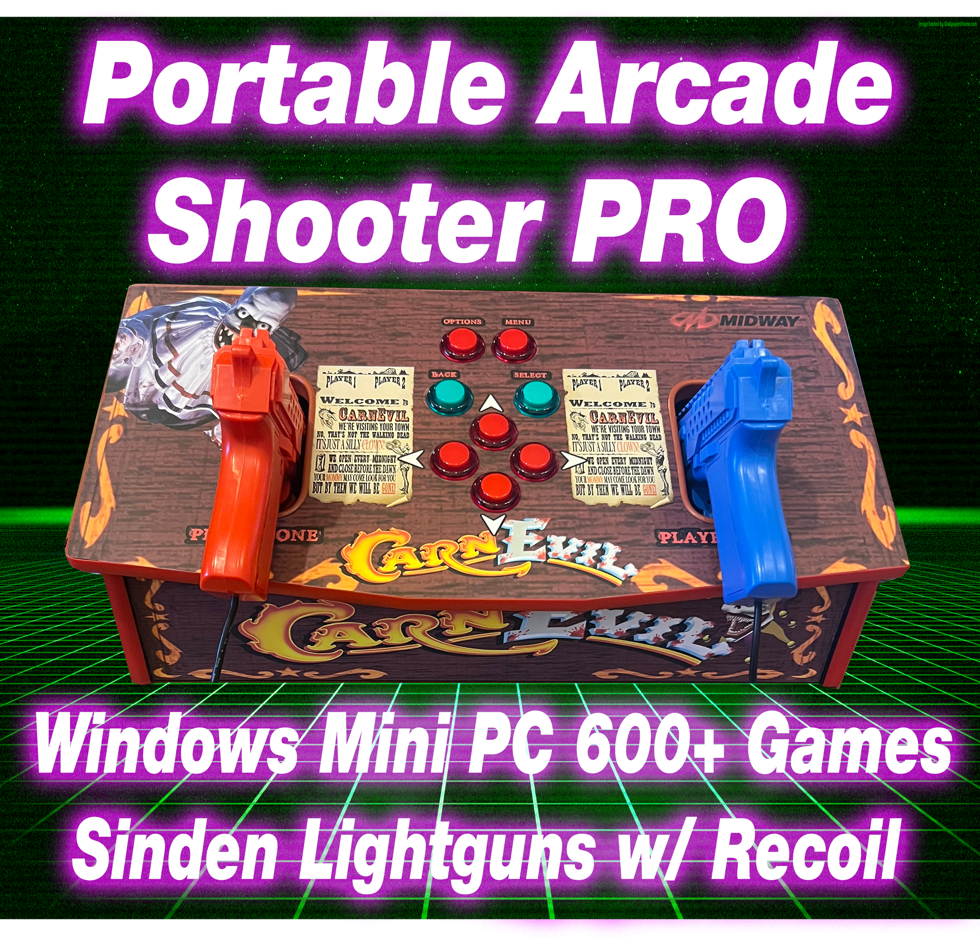 Portable Gun Arcade Wraps HereThe default wrap is CarnEvil, if wanting another theme check out the link below and list your choice in the text box before checkout.