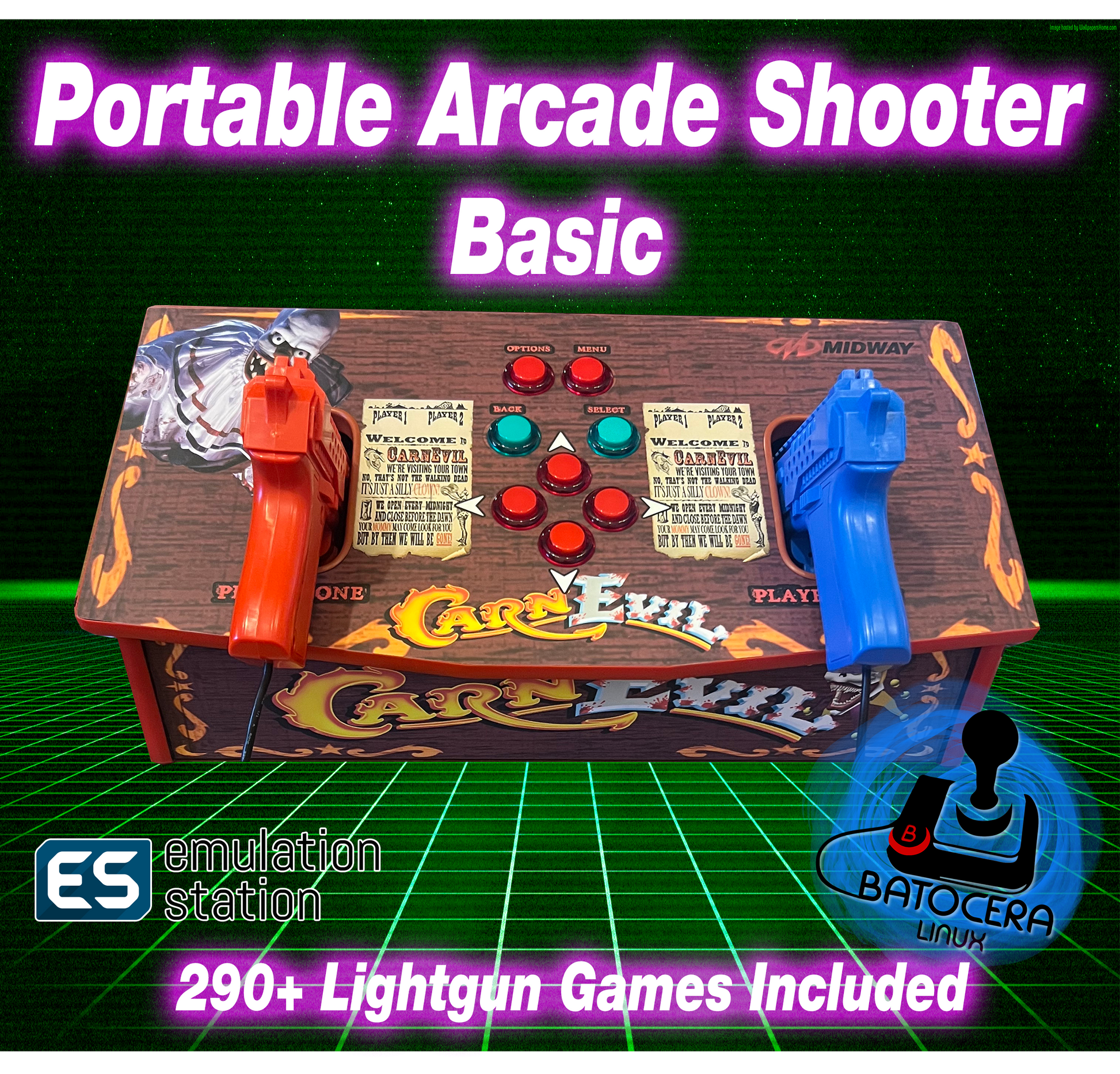 Portable Gun Arcade Wraps HereThe default wrap is CarnEvil, if wanting another theme check out the link below and list your choice in the text box before checkout.